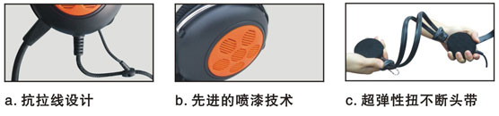 超轻钢制双梁头戴,稳固耐用。抗拉线结构设计,保护耳机线材与喇叭接触不易拉伤。独特分子电喷工艺技术加时尚的五花型亮橙装饰,清新明快。简易式音量控制器设计在耳壳上面,特色软胶麦克风,切断仍可语音通话。 |