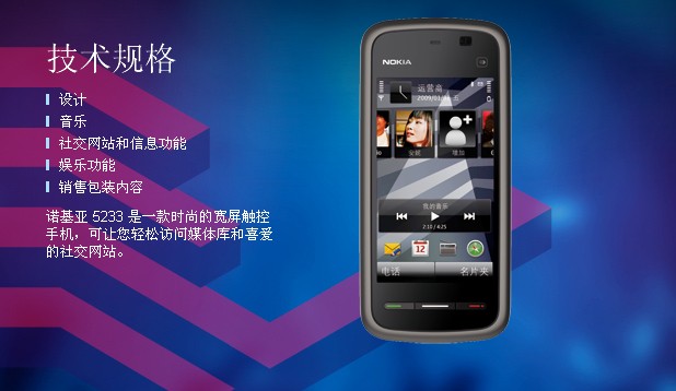 | 商品名称:诺基亚(Nokia)5233 GSM手机(黑色) |
