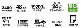 扫描速度 灰度/黑白:5.6毫秒/线(2400 dpi),2.9毫秒/线(1200 dpi),1.8毫秒/线(600 dpi),3.7毫秒/线(300 dpi);彩色:16.9毫秒/线)(2400 dpi),8.7毫秒/线)(1200 dpi),4.6毫秒/线)(600 dpi),5.5毫秒/线(300 dpi)
