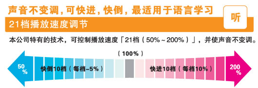 2、 独有的21档快慢无失真播放。快速每档10%最大200%,慢速5%最大50%。