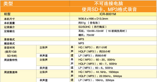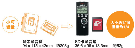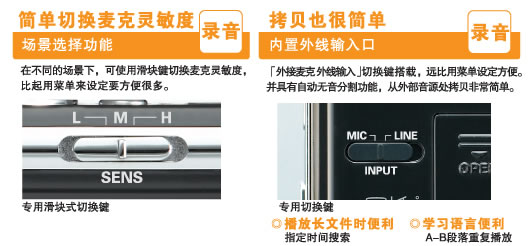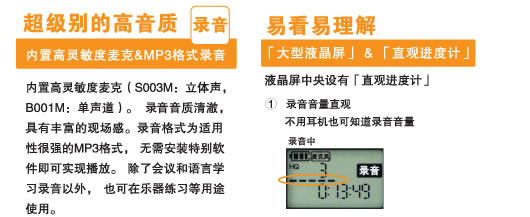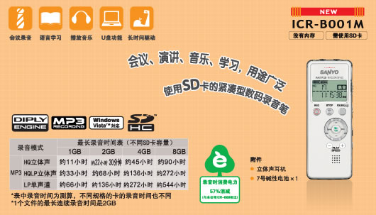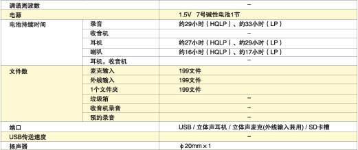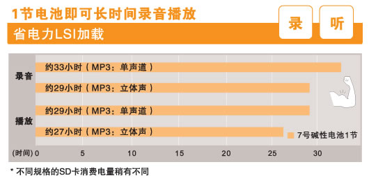 6、 采用三洋“DIPLY ENGINE”二代芯片。单节7号电池连续录音达到超长的33个小时。