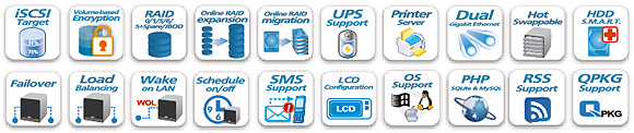 威联通的TS-809 Pro 能够同时支持NAS及iSCSI 装置,提供建置IP-SAN一个低成本及有效率的解决方案。服务器管理员能够使用内建的iSCSI 装置服务建立最多八组装置。不同的iSCSI逻辑单元数(LUNs: Logical Unit Number) 能够做为现有储存空间的扩充或是现存应用服务器 (如:数据库服务器、电子邮件服务器)的备份位置。