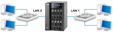 网络负载平衡 (Load-Balancing) TS-809 Pro支持Bandwidth aggregation,增加档案的传输速率(需要搭配支持802.3ad设定的以太交换器)。