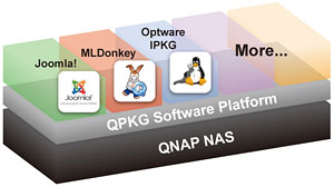 透过QPKG平台扩充Turbo NAS新应用 QNAP新推出的QPKG 平台让使用者不用经由繁杂的程序,便能够透过简单的下载与安装,享受来自全球社群所开发的相关软件套件来扩充Turbo NAS的应用。