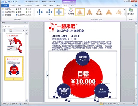 •使用 Word 2010 中内置的设计模板创建具有专业外观的文档,从学生成绩单到家庭新闻稿。
