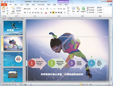 •使用视频编辑器,在演示文稿中直接插入和编辑视频并添加令人叫绝的创意效果。