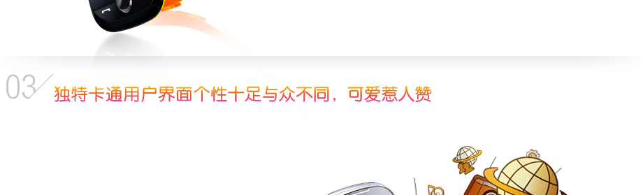 - 机身预置三星S3650C特有卡通界面,独特卡通主题,手绘式图标以及动画效果,绝对让你成为周围人的焦点,秀个性,添趣味。