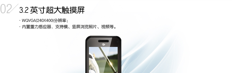 - 3.2英寸超大触摸屏,自由点触,精彩跃动指尖;