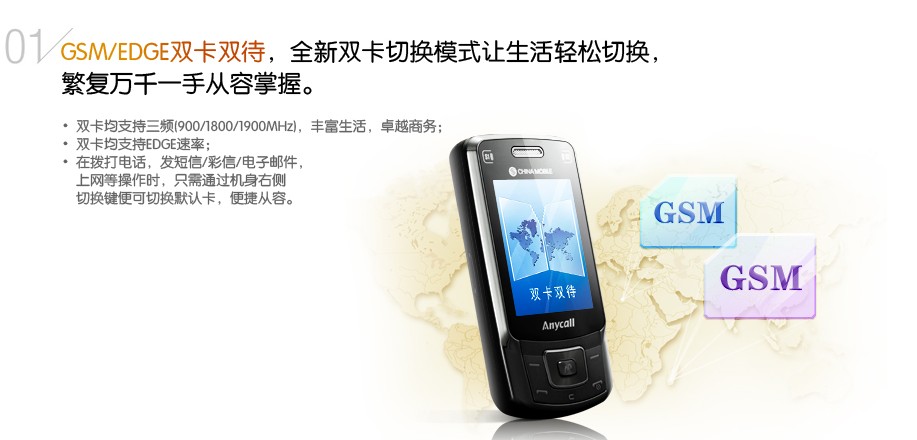 | 网络制式 | GSM |  | 网络频率 | 900/1800/1900MHz |  | 数据传输 | GPRS |  | 浏览器 | 支持 |  | 存储 |