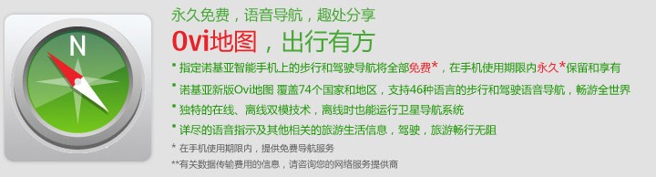 ·OVI导航地图终身免费 ·内置GPS卫星导航模块