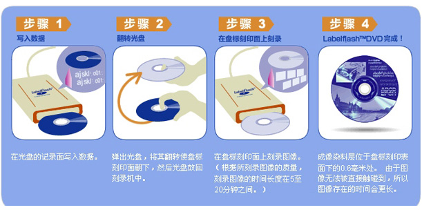 特别支持LabelFlash(闪雕)光盘雕刻技术,结合随机附赠的Nero刻录软件,可以轻松雕刻光盘表面,让光盘更易于辨识,其细腻的画质表现和持久保存的特性更出众。