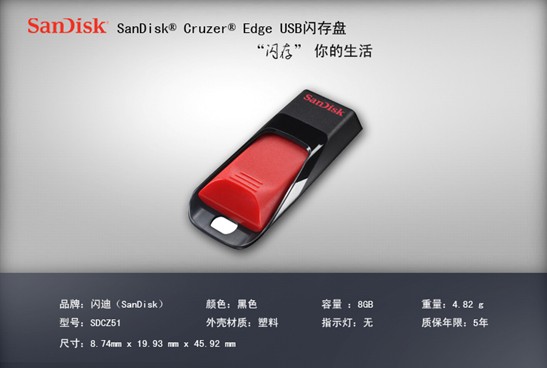 | SanDisk® Cruzer® Edge 8GB USB闪存盘