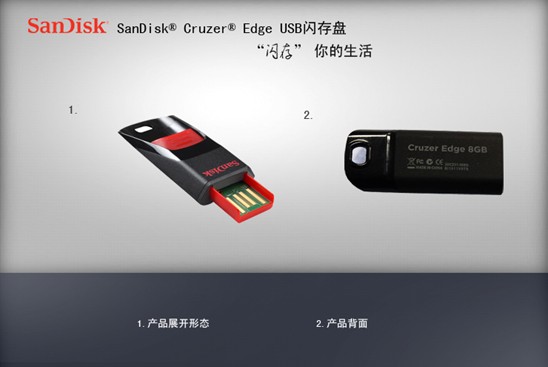 1.介绍资料 通过此款小巧、便携的 SanDisk® Cruzer® Edge USB闪存盘(CZ51) 时尚的小巧滑动设计,将你的数据安全地 跟钥匙扣一起携带。外形纤巧,功能强大,只要将您的照片、音乐或其它喜爱的文件存入 SanDisk Cruzer® Edge USB 闪存盘,即可快速与您的家人和朋友分享。