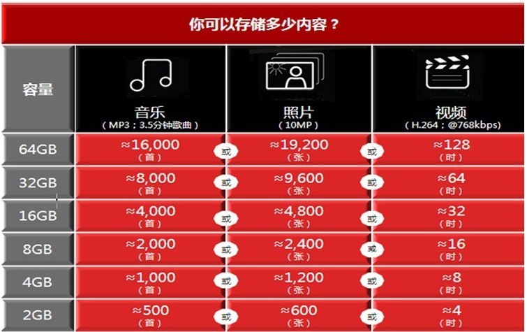 容量对照表