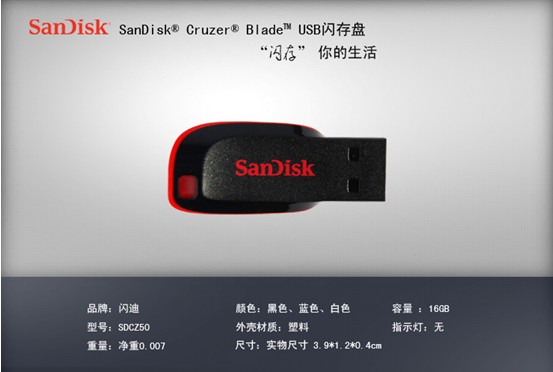 | SanDisk® Cruzer® Blade™ 16GB USB闪存盘