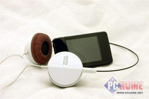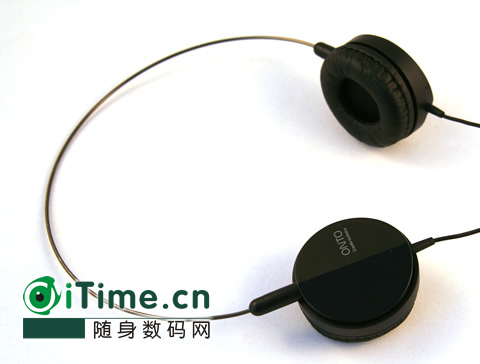 耳机为黑色ON400,和IPOD 搭配起来可谓是绝配。相信ON400其特别的外型,让人过眼难忘。和一般耳机不同,ON400的头带采用了一条金属头筐作为支架代替,头筐的弹性适中,佩带后能够很好的配合头型调整,即使长时间佩带也不会有夹耳之感。