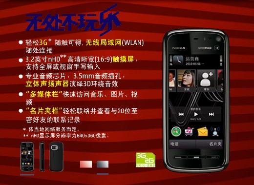5800W XpressMusic 支持wifi 和3G(WCDMA/GSM)