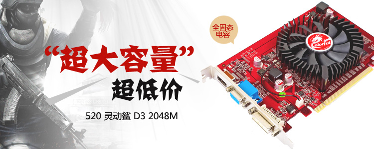 > 七彩虹 520 灵动鲨 D3 2GB 810/1000MHz 64位 DDR3 PCI-E显卡