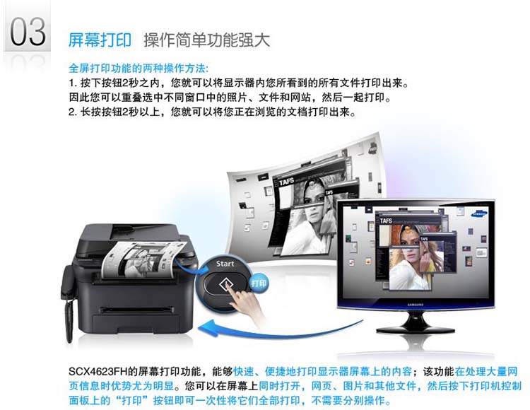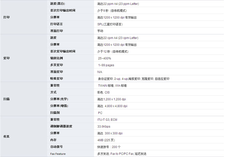 > 三星 SCX-4623FH黑白激光一体机(打印 复印 扫描 传真)