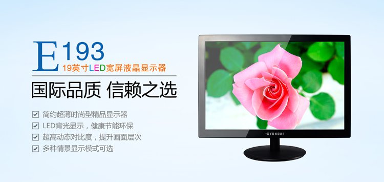 | 商品名称:现代(HYUNDAI)E193 19英寸LED背光宽屏液晶显示器 |