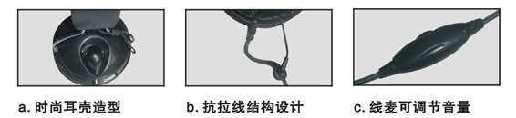 | 全黑色调,配合网吧环境,耐脏耐用。时尚耳壳造型,抗拉线结构设计,增长线材使用寿命。线麦设计,方便用户调节音量。独特喇叭腔体设计,音质层次分明